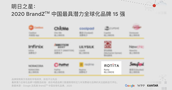 2020年,公司女装品牌被BrandZ/TM 评为 “中国最具潜力全球化品牌15强”。