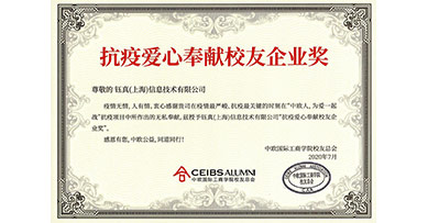 中欧校友会“抗疫爱心奉献校友企业奖”